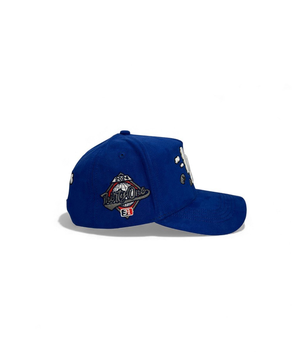LA CLOUDS GAMUZA. Gorra 31 Hats con bordados inspirados en los cielos de Los Ángeles. La visera y/o el cuerpo principal están fabricados en gamuza, aportando una textura premium y un toque elegante a este diseño icónico.