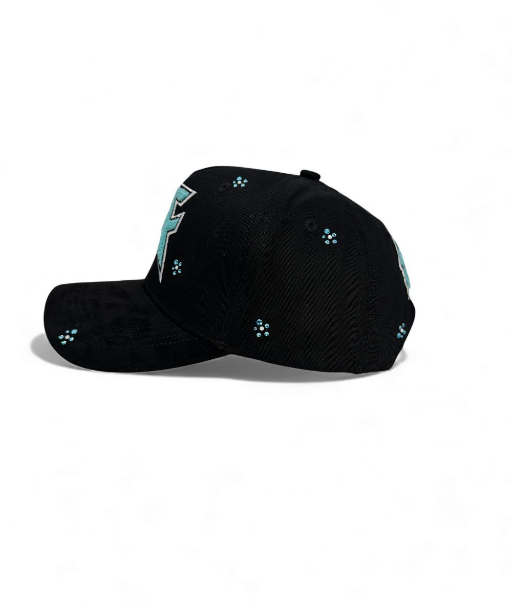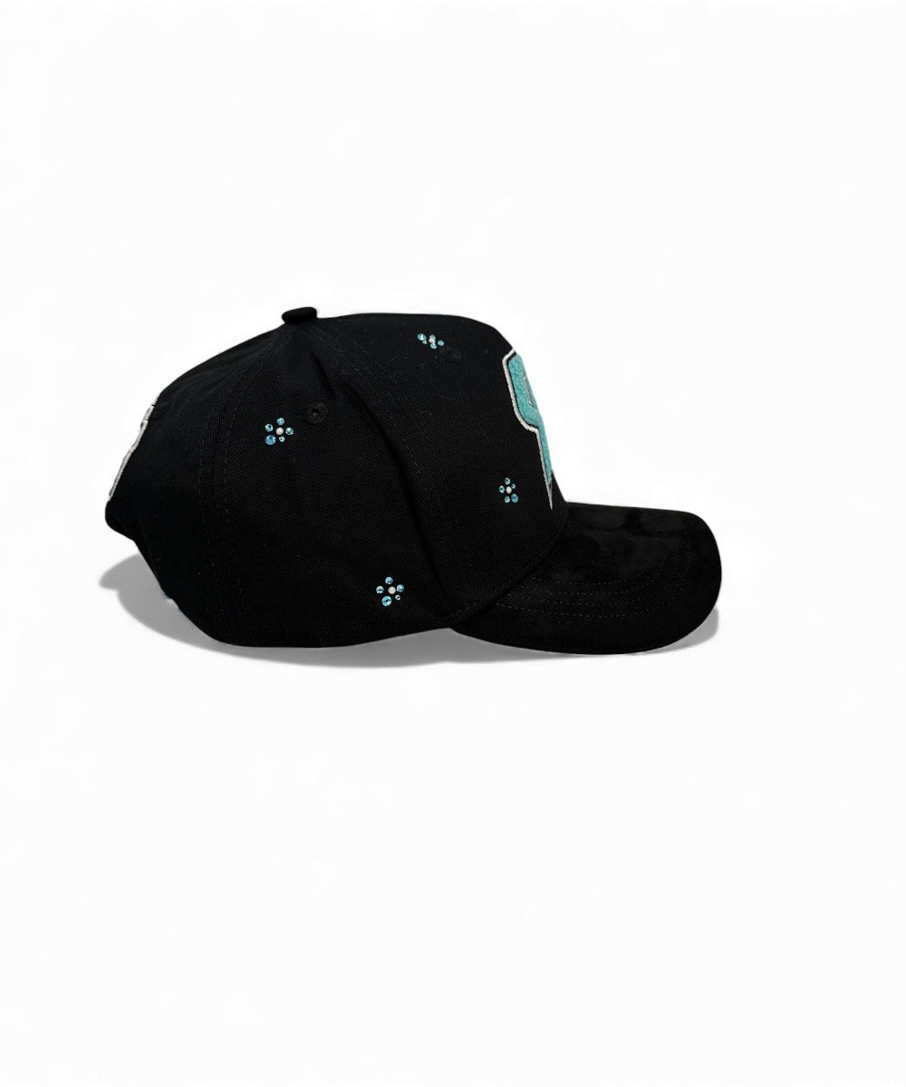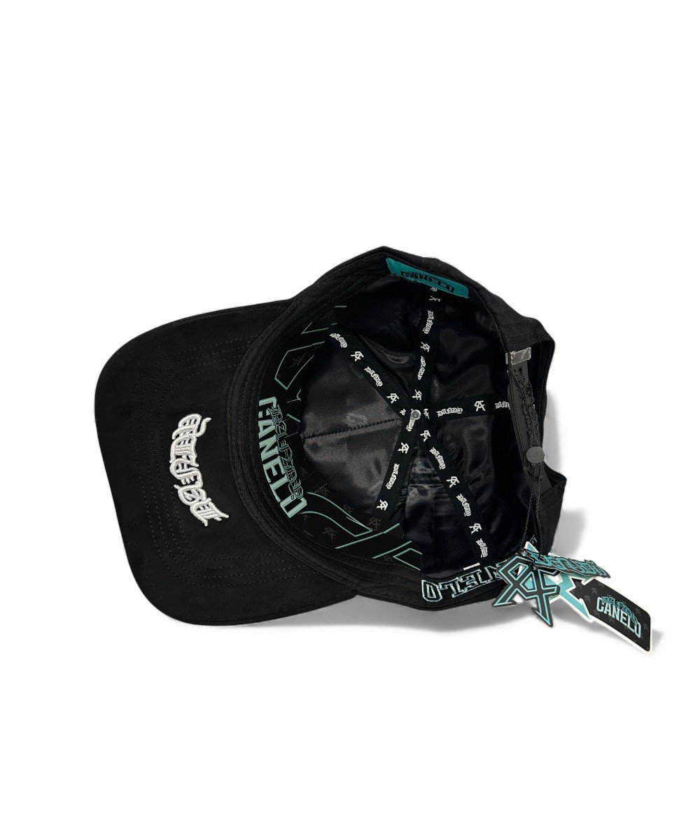 HOMENAJE AL BOXEO. Gorra Dandy Hats de visera curva, resultado de la colaboración con el campeón Canelo Álvarez. Combina colores negro y azul con detalles exclusivos, ofreciendo un fit moderno y un estilo que honra la grandeza del boxeo mexicano.
