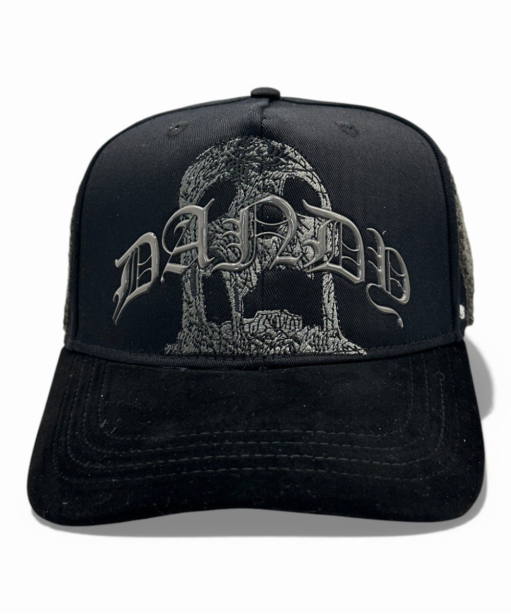 Gorra de estética dark street. Gráficos impactantes, bordados de alto relieve y silueta estructurada. Perfecta para estilos alternativos y coleccionistas.